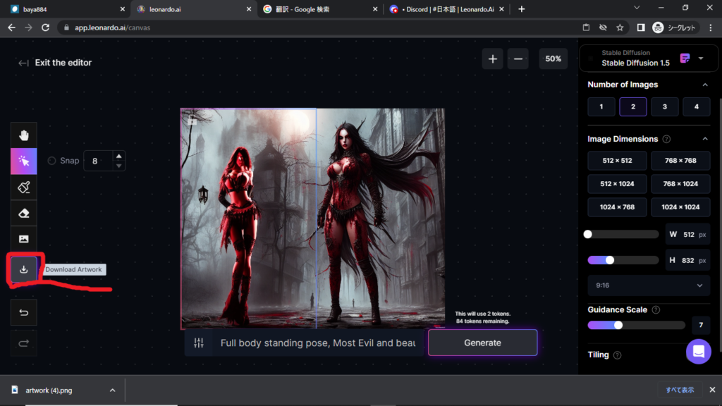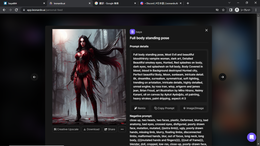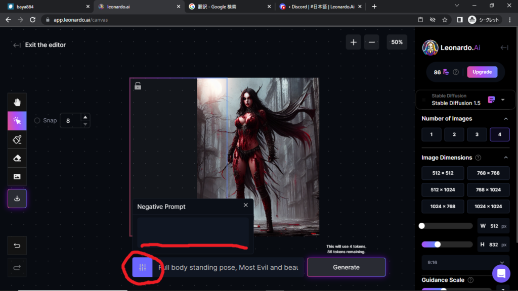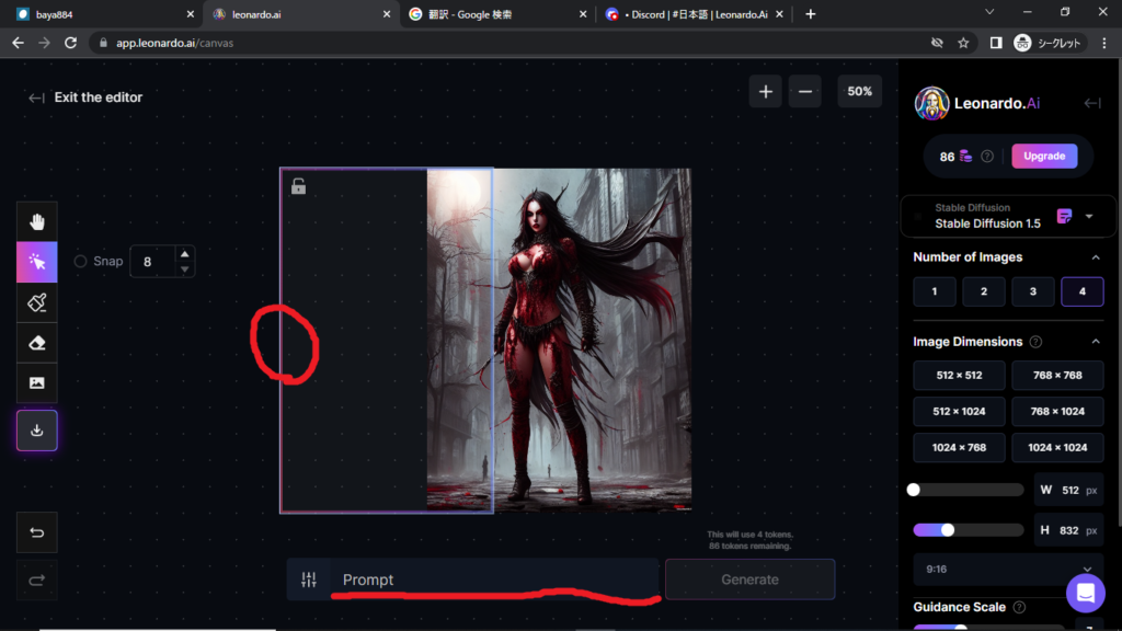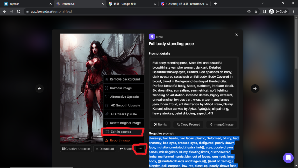 やり方がわからない方は、「Leonardo.aiの簡単な修正方法1」をみてください。
