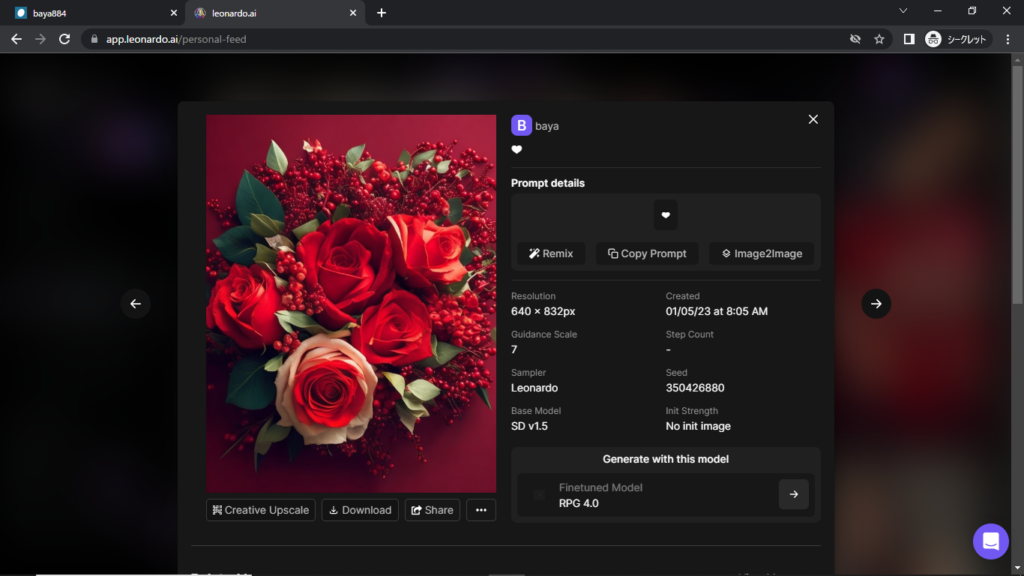 絵文字の「赤い」って部分はLeonardo.aiは理解しているような結果にはなりました。