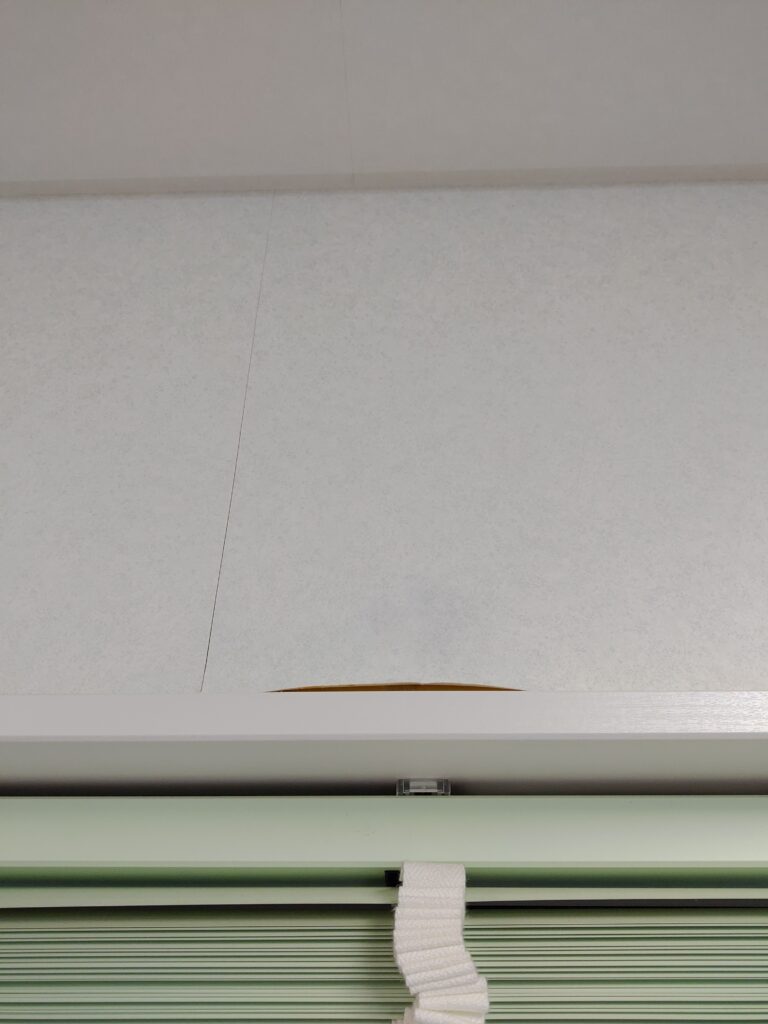 壁紙が剥がれているところから水が漏れています。これのおかげで二階ベランダに水が貯まってると気が付いたのは良かったんですが、雨漏りしているのはヤバいですよね・・・。