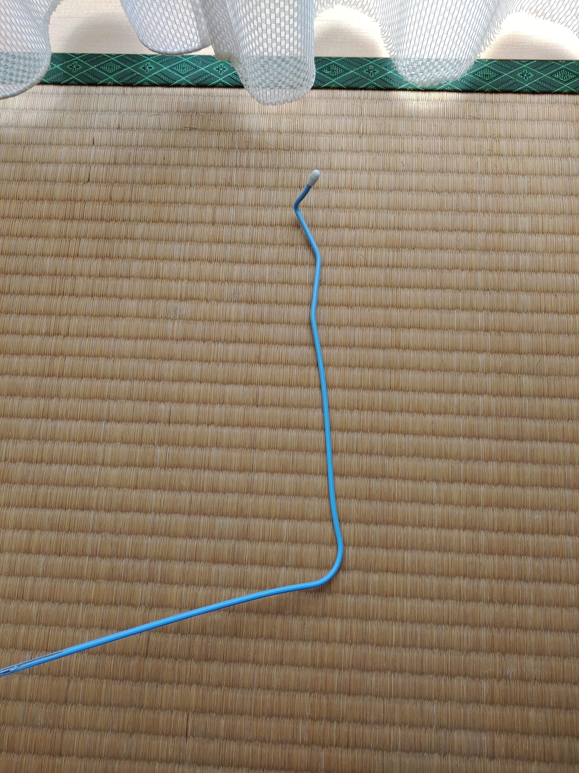 針金ハンガーを分解して作った排水溝掃除道具です。これを穴に突っ込んでグリグリすると綺麗にできました。